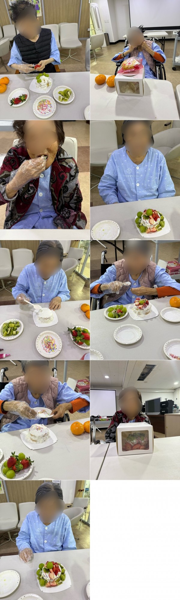 특히 일부 어르신께서는 “가족이 올 것 같다”며 케이크를 포장 용기에 담아 가족에게 전하고 싶은 마음을 표현하시는 모습도 보여주셨습니다.
