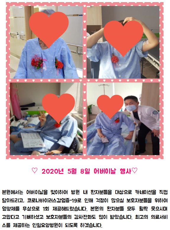 인일요양병원에 계시는 모든 분들이 즐겁고 행복한 5월이 되시길 바랍니다.♥