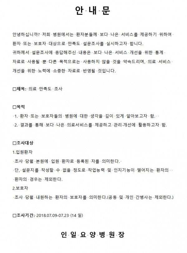 2018 의료 만족도 조사 안내문 페이지 정보 작성자 최고관리자 작성일18-07-09 13:08 조회10,276회 댓글0건 관련링크 이전글 다음글 본문 2018 의료 만족도 조사 안내문 목록