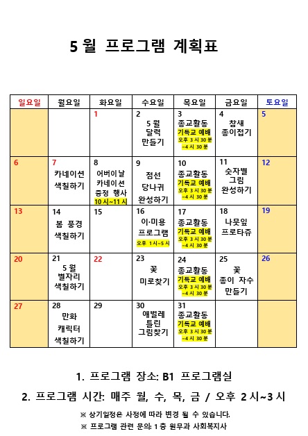 5월 사회복지 프로그램 계획표 페이지 정보 작성자 최고관리자 작성일18-05-07 13:44 조회9,004회 댓글0건 관련링크 이전글 다음글 본문 5월 사회복지 프로그램 계획표 목록