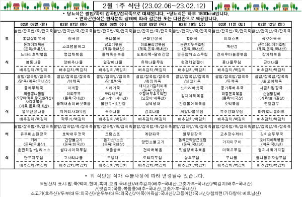"금주의 식단 메뉴를 확인 할 수 있습니다."