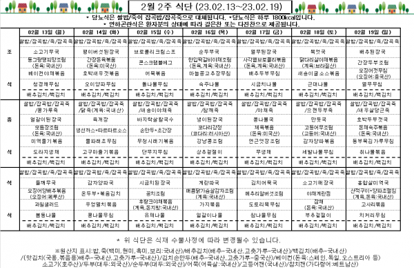 2월 2주 식단표
