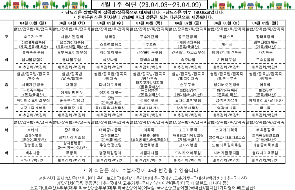 4월 1주 식단표