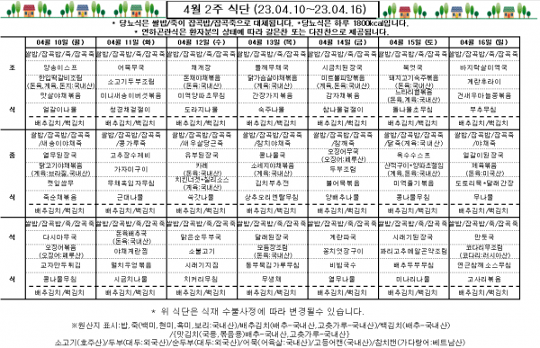 "금주의 식단 메뉴를 확인 할 수 있습니다."