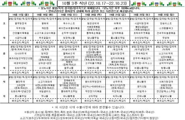 "금주의 식단 메뉴를 확인 할 수 있습니다."