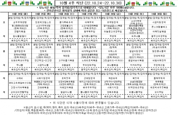 10월 4주 식단표