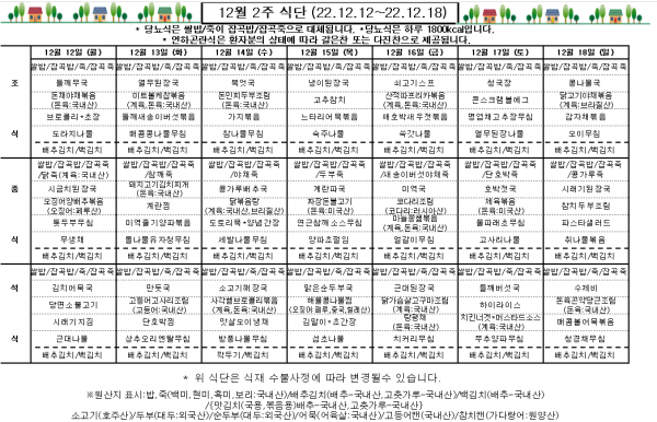 12월 2주 식단표