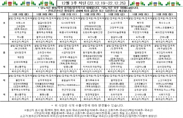 "금주의 식단 메뉴를 확인 할 수 있습니다."