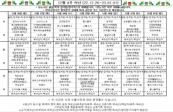 "금주의 식단 메뉴를 확인 할 수 있습니다."