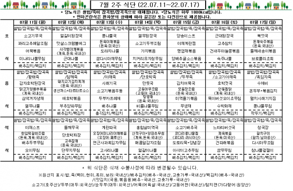 "금주의 식단 메뉴를 확인 할 수 있습니다."