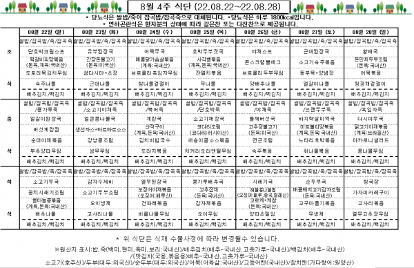 "금주의 식단 메뉴를 확인 할 수 있습니다."