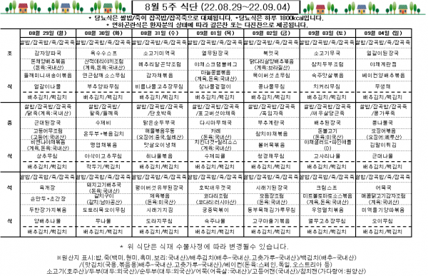"금주의 식단 메뉴를 확인 할 수 있습니다."