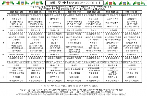 9월 1주 식단표