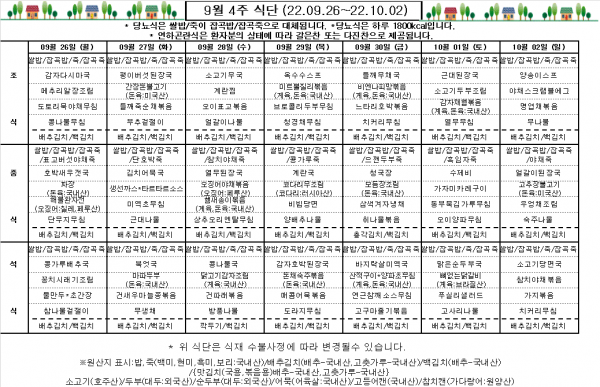 "금주의 식단 메뉴를 확인 할 수 있습니다."