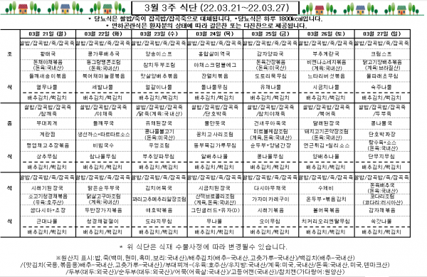"금주의 식단 메뉴를 확인 할 수 있습니다."