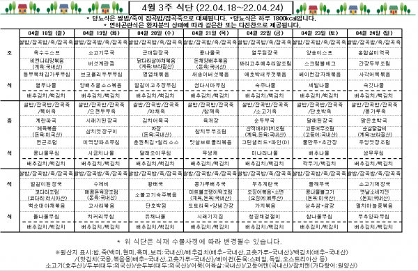 "금주의 식단 메뉴를 확인 할 수 있습니다."