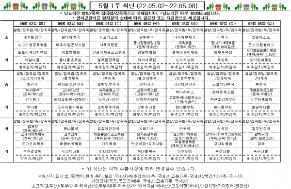 "금주의 식단 메뉴를 확인 할 수 있습니다."