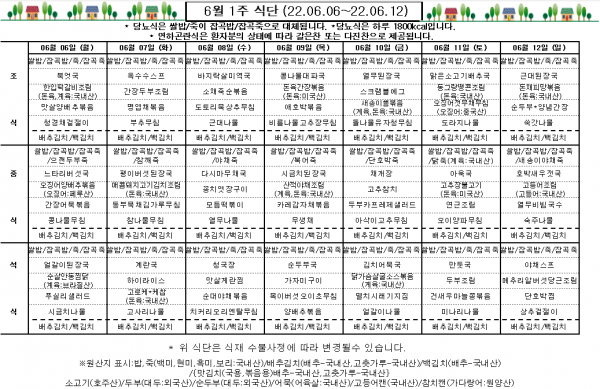 "금주의 식단 메뉴를 확인 할 수 있습니다."