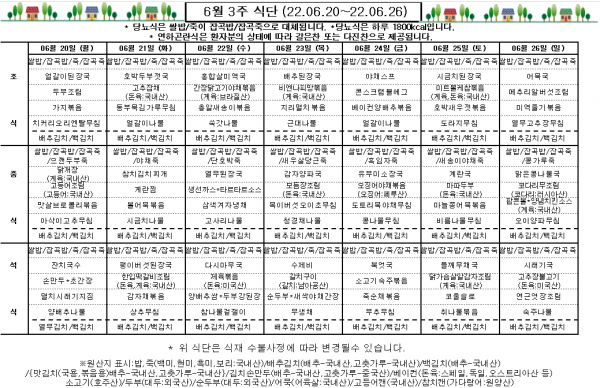 6월 3주 식단표