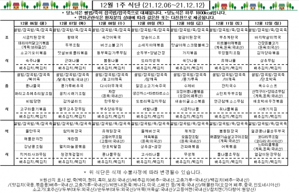 12월 1주 식단표