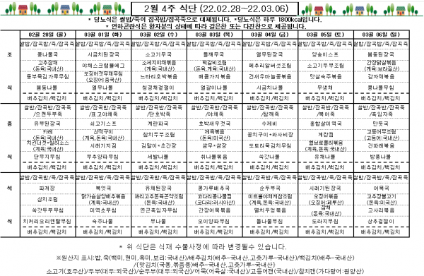 "금주의 식단 메뉴를 확인 할 수 있습니다."