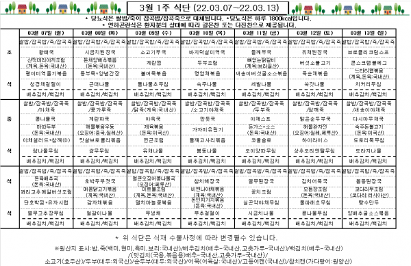 "금주의 식단 메뉴를 확인 할 수 있습니다."