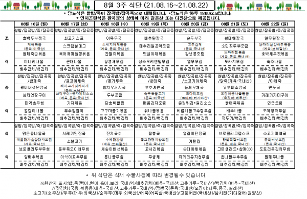 8월 3주 식단표