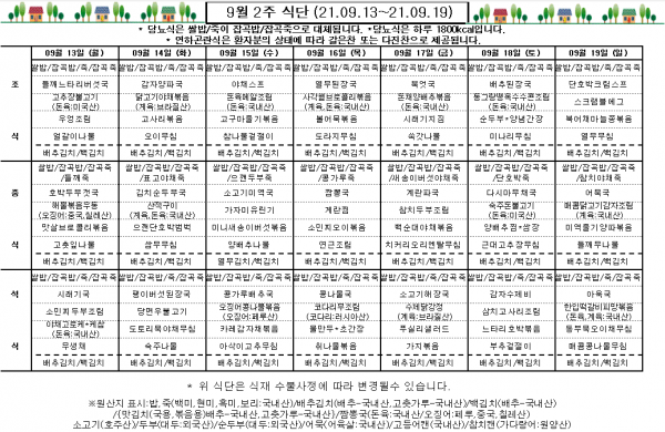 "금주의 식단 메뉴를 확인 할 수 있습니다."