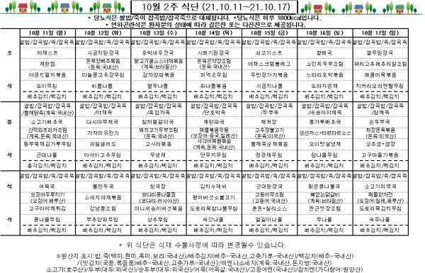 "금주의 식단 메뉴를 확인 할 수 있습니다."
