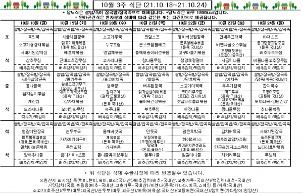 "금주의 식단 메뉴를 확인 할 수 있습니다."