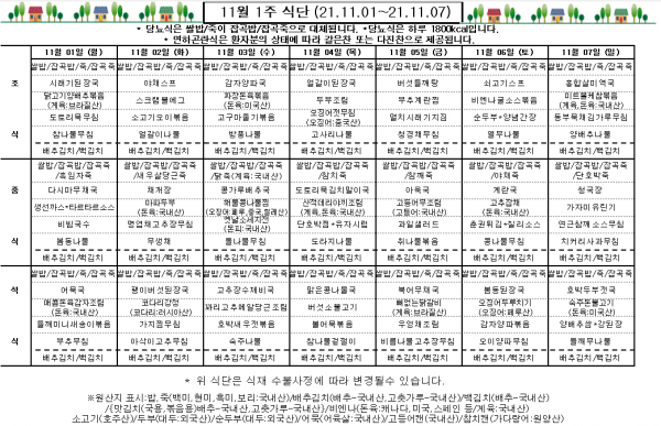 "금주의 식단 메뉴를 확인 할 수 있습니다."
