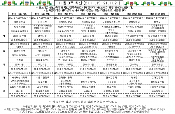 "금주의 식단 메뉴를 확인 할 수 있습니다."