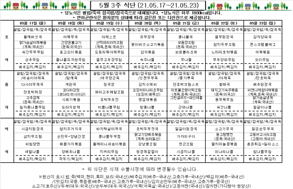 "금주의 식단 메뉴를 확인 할 수 있습니다."