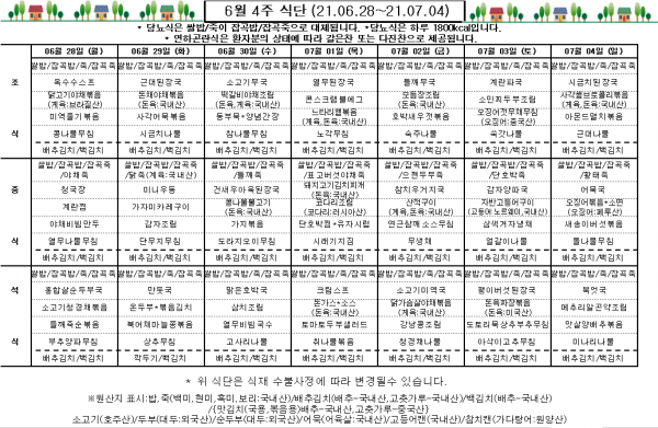 6월 4주 식단표