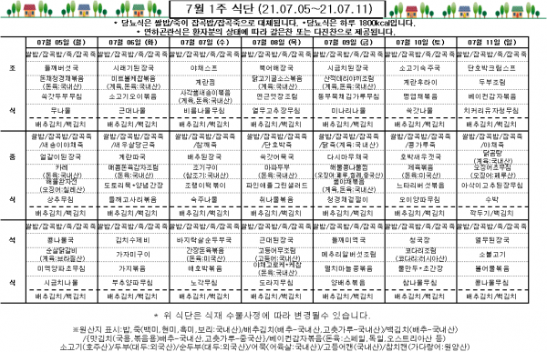 "금주의 식단 메뉴를 확인 할 수 있습니다."