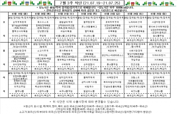"금주의 식단 메뉴를 확인 할 수 있습니다."