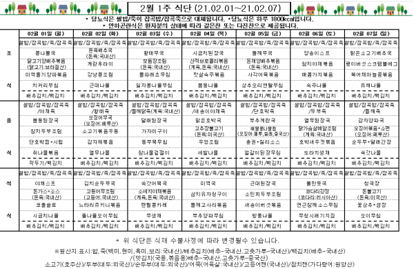 "금주의 식단 메뉴를 확인 할 수 있습니다."