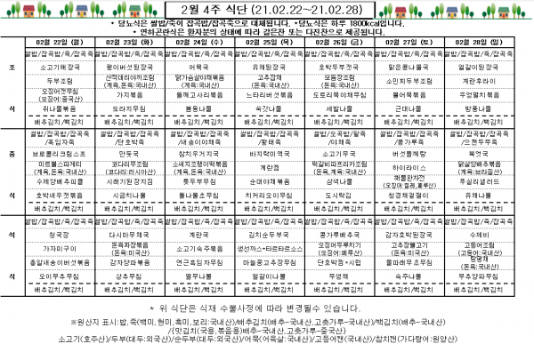 2월 4주 식단표