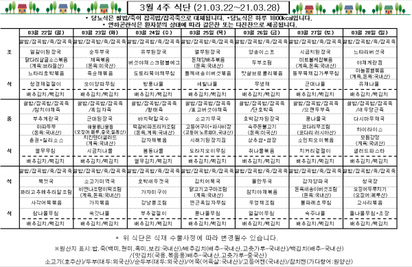 "금주의 식단 메뉴를 확인 할 수 있습니다."