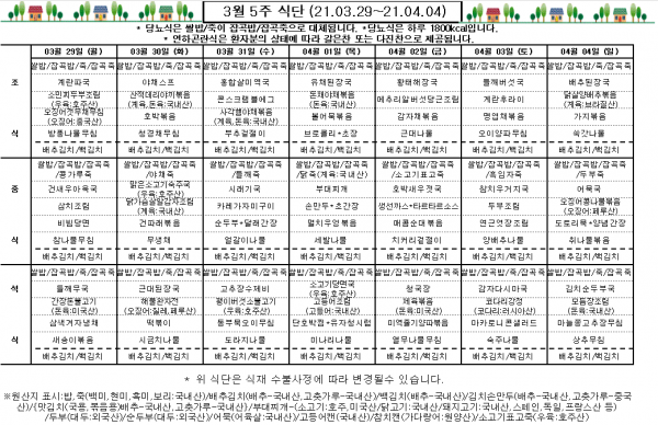 3월 5주 식단표
