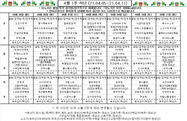 "금주의 식단 메뉴를 확인 할 수 있습니다."