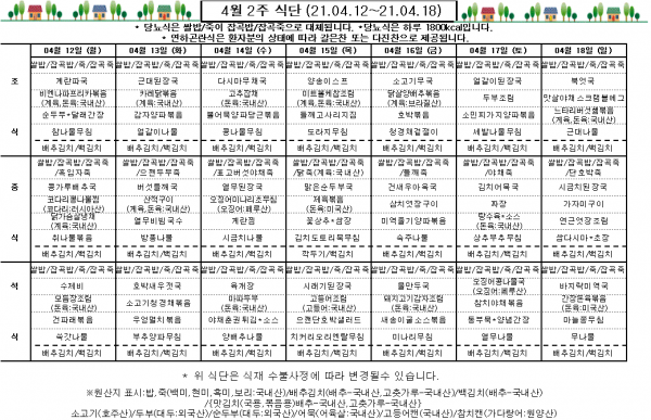 4월 2주 식단표