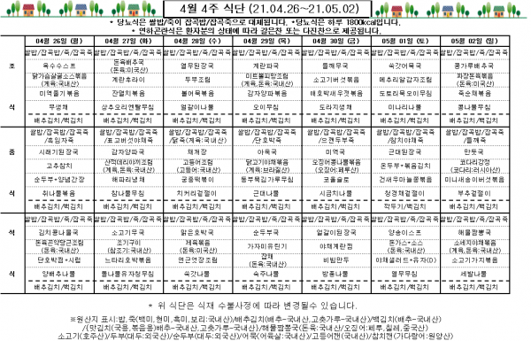 "금주의 식단 메뉴를 확인 할 수 있습니다."