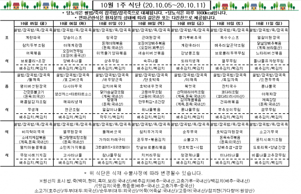 10월 1주 식단표