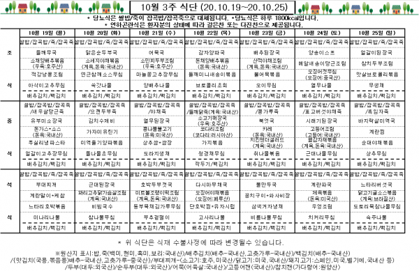 10월 3주 식단표