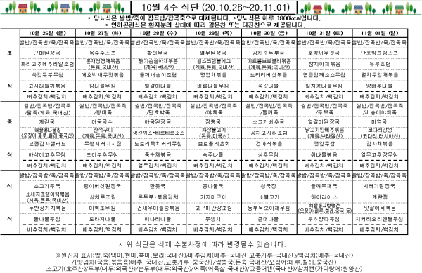 "금주의 식단 메뉴를 확인 할 수 있습니다."