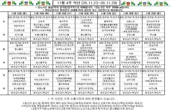 "금주의 식단 메뉴를 확인 할 수 있습니다."