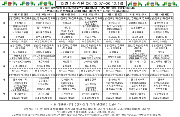 12월 1주 식단표