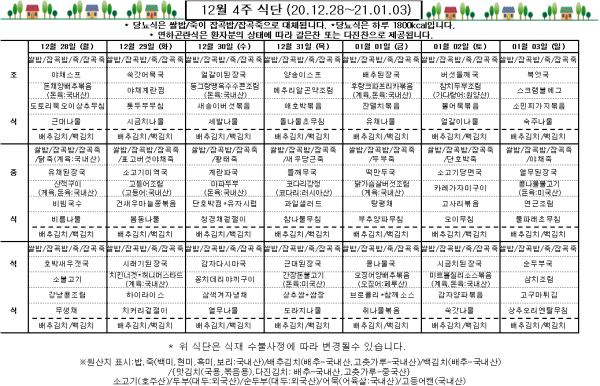"금주의 식단 메뉴를 확인 할 수 있습니다."