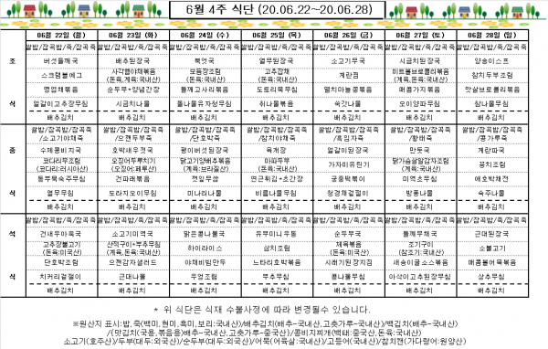 6월 4주 식단표